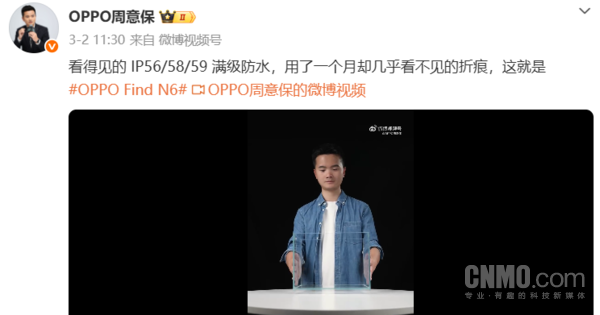 【CNMO科技讯息】3月12日,OPPO官耿直式公布了全新折叠旗舰Find N6在驻扎性能上的重磅升级。新机将复古IP59、IP58、IP56满级防水,并可在-20°C极寒环境下宽解开合万博manbext体育官网app官网,收场冰天雪地中的雄厚耐用。值得一提的是,OPPO Find N6将于3月17日19:00环球首发。