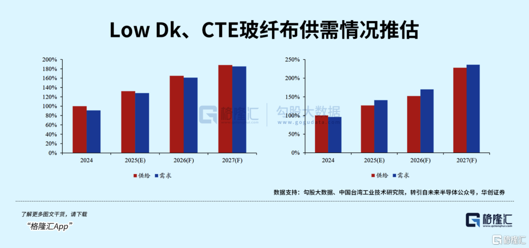 电子玻纤布的发展长期与下流终局时间升级同频,而AI算力改进的到来,平直对数据传输速度和相识性提议了更高条目,鼓励上游电子玻纤布材料加快迭代,低介电(Low Dk)和低热推广总共(Low CTE)两大高端品类需求迎来井喷。而电子布的薄型化不仅带来更轻的分量与更优的信号传输速度,更意味着指数级普及的出产时间壁垒与产物附加值。